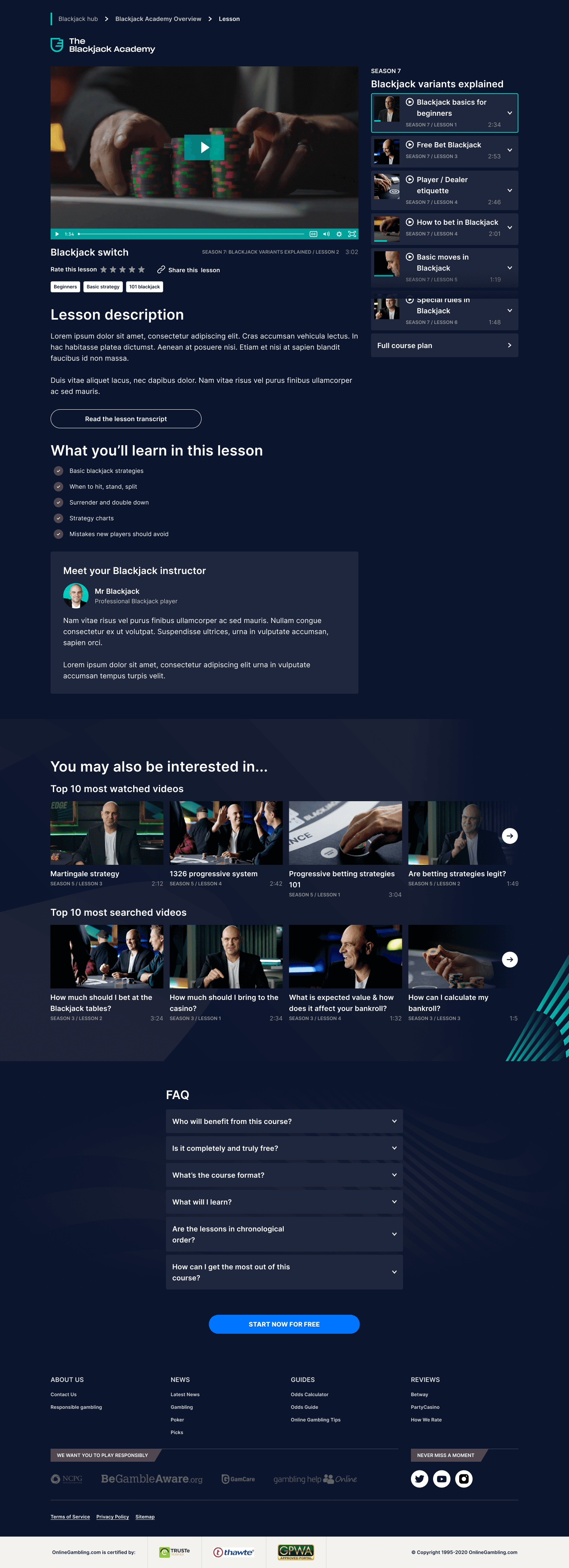 The Blackjack Academy was a standalone learning platform built under the onlinegambling.com umbrella, designed to teach players how to play blackjack through a series of short, professionally produced videos. The idea came from a genuine gap in the market. There were a handful of blackjack courses online, but nothing coherent, complete or engaging enough to serve a casual player who simply wanted to learn the game properly. iTech Media had already brought on board Matt, a professional Canadian blackjack player and ambassador known as Mr Blackjack, as part of the main onlinegambling.com offering. The Blackjack Academy was the natural next step: a dedicated platform built around his expertise and on-screen presence, with 72 videos organised across 8 seasons, covering everything from the absolute basics through to advanced strategy and card counting.